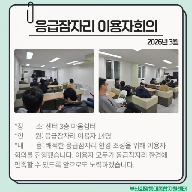 2026³â 3¿ù ÀÀ±ÞÀáÀÚ¸® ÀÌ¿ëÀÚ È¸ÀÇ