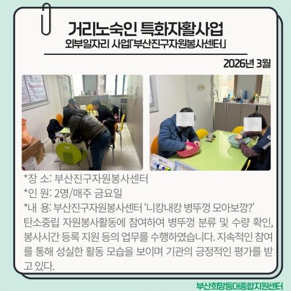 3¿ù °Å¸®³ë¼÷ÀΠƯÈÀÚȰ»ç¾÷ ¿ÜºÎÀÏÀÚ¸®(ºÎ»êÁø±¸ÀÚ¿øºÀ»ç¼¾ÅÍ) Âü¿©