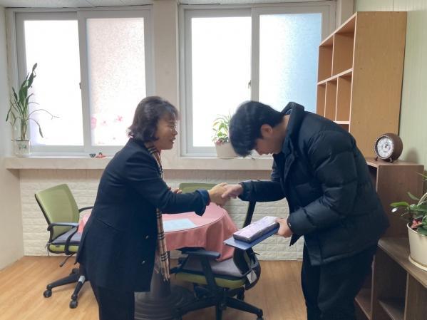 ¼¾ÅÍ¿¡¼ ¼º½ÇÇÏ°Ô ±Ù¹«ÇØÁØ ¹Ú*¹Î »çȸº¹¹«¿ä¿øÀÇ ¼ÒÁýÇØÁ¦¿¡ µû¶ó °¨»çÀÇ Àǹ̷ΠǥâÀå ¹× ¼±¹°À» Àü´ÞÇÏ¿´½À´Ï´Ù. ¾ÕÀ¸·Î ¹Ú*¹Î ¿ä¿ø¿¡°Ô ÁÁÀº Àϵ鸸 °¡µæÇÏ±æ ±â¿øÇÕ´Ï´Ù!
