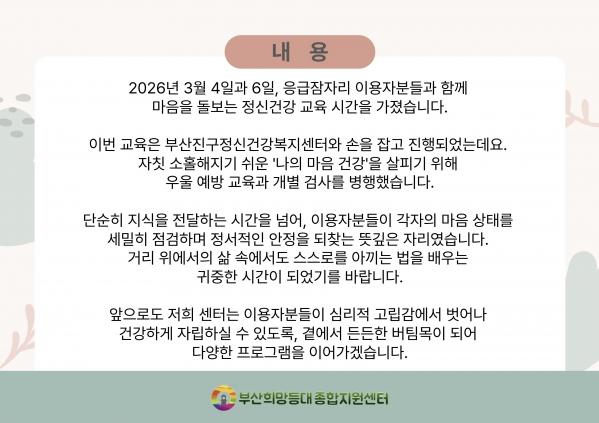 2026³â 3¿ù ºÎ»êÁø±¸Á¤½Å°Ç°­º¹Áö¼¾ÅÍ¿Í ÇÔ²²ÇÏ´Â Á¤½Å°Ç°­ ±³À°