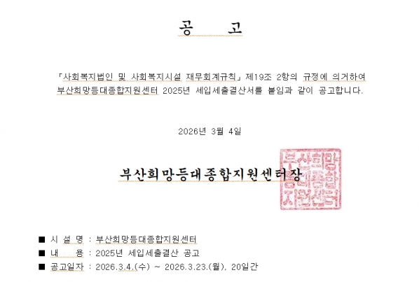 ºÎ»êÈñ¸Áµî´ëÁ¾ÇÕÁö¿ø¼¾ÅÍ ¼¾ÅÍÀå ÃÖÁ¾ÇÕ°ÝÀÚ °ø°í